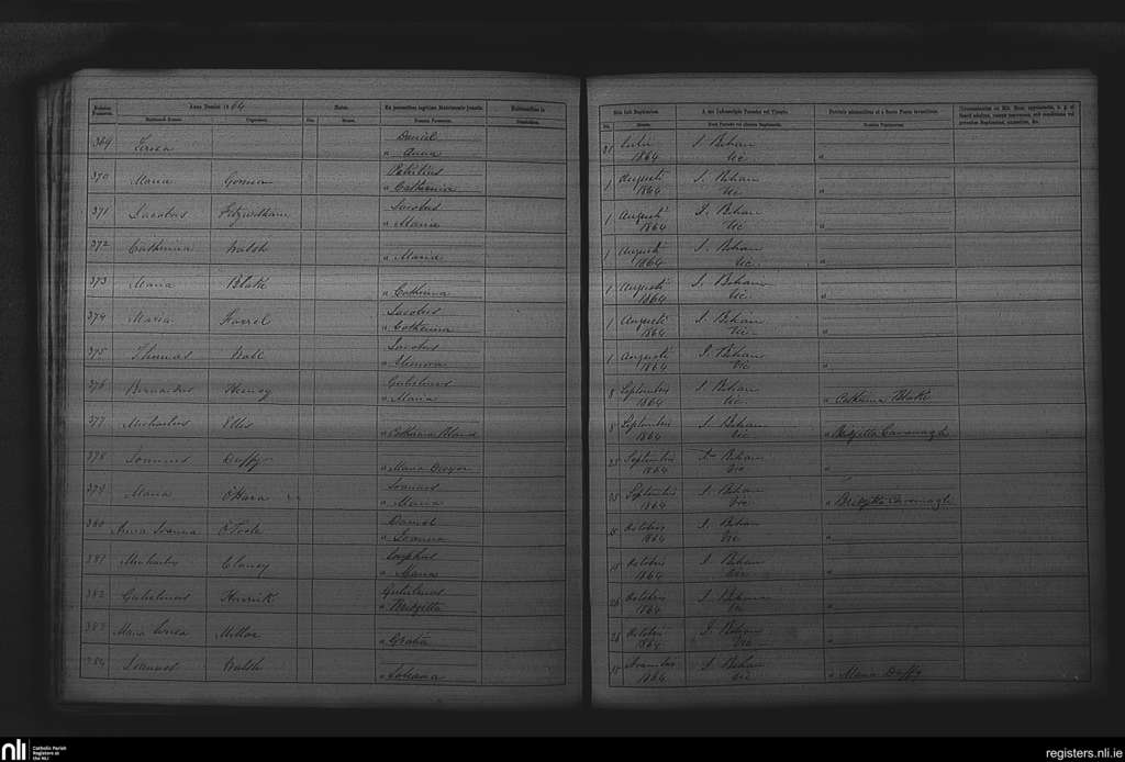 St. Paul's, Dublin city; County of Dublin; Archdiocese of Dublin. Baptisms, July 1864 to Nov. 1864