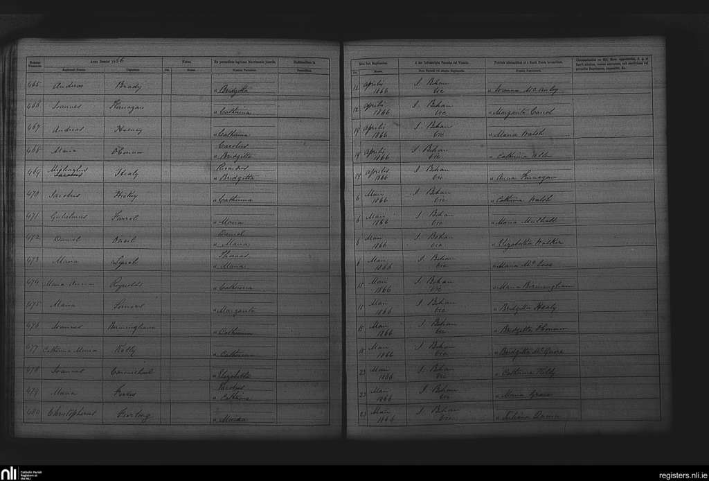 St. Paul's, Dublin city; County of Dublin; Archdiocese of Dublin. Baptisms, Apr. 1866 to May 1866