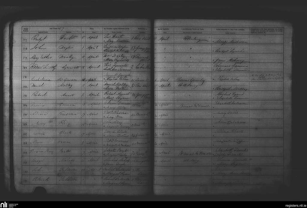 St. Paul's, Dublin city; County of Dublin; Archdiocese of Dublin. Baptisms, Apr. 1857