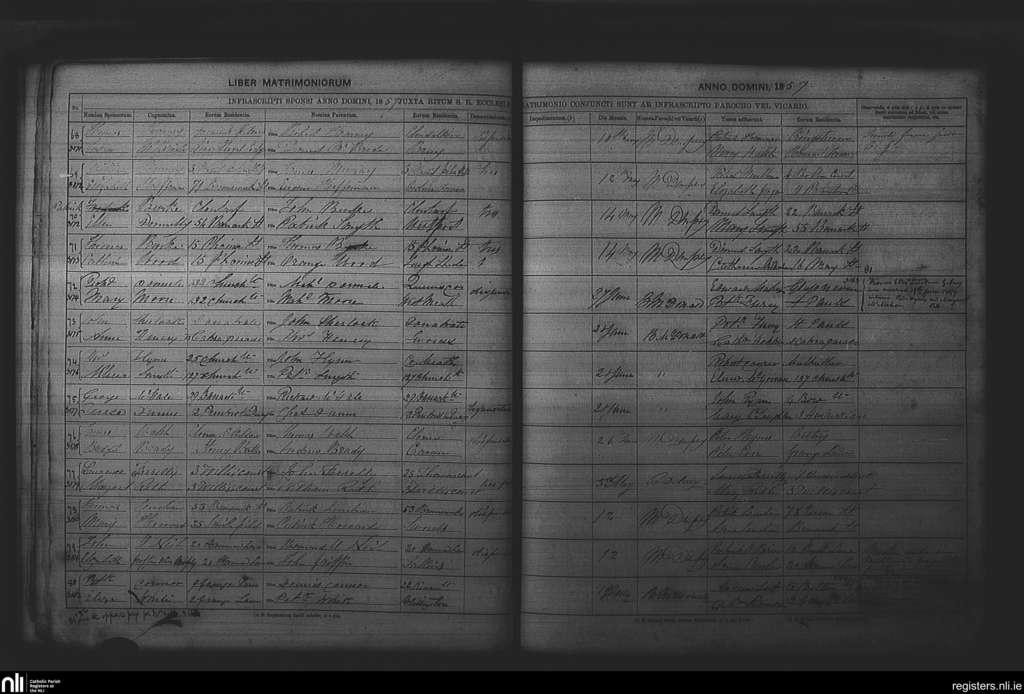 St. Paul's, Dublin city; County of Dublin; Archdiocese of Dublin. Marriages, May 1857 to July 1857