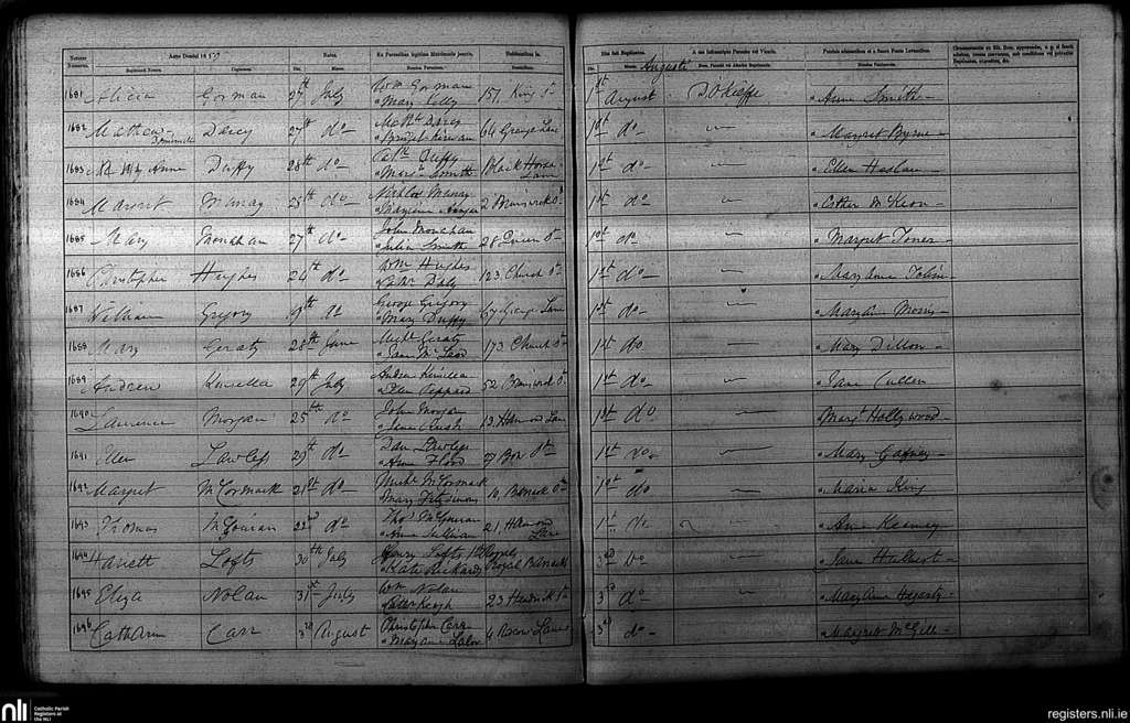 St. Paul's, Dublin city; County of Dublin; Archdiocese of Dublin. Baptisms, Aug. 1859