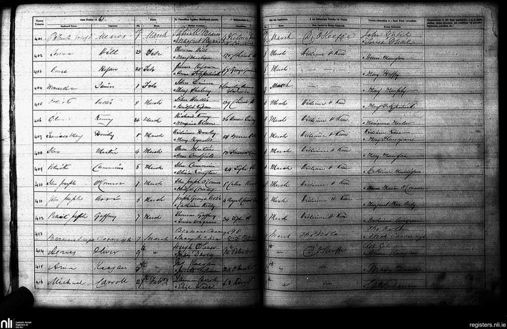 St. Paul's, Dublin city; County of Dublin; Archdiocese of Dublin. Baptisms, Mar. 1861