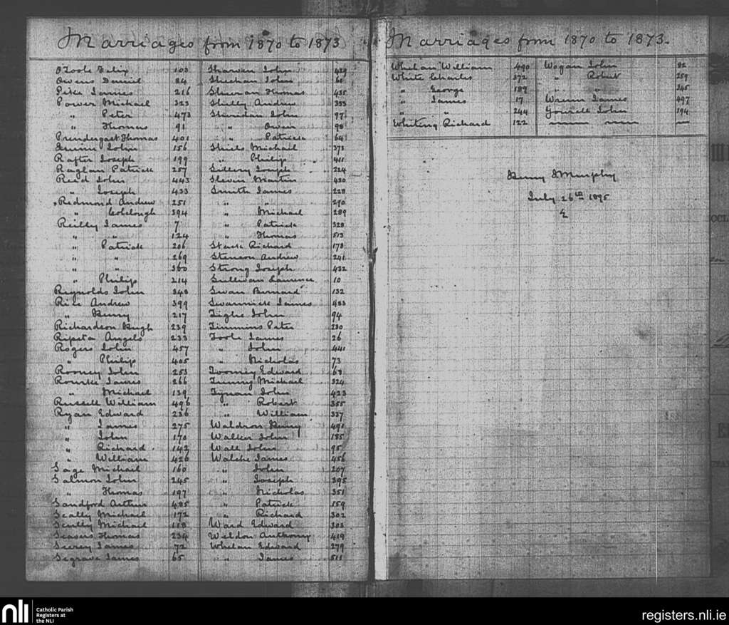 St. Paul's, Dublin city; County of Dublin; Archdiocese of Dublin. Marriages