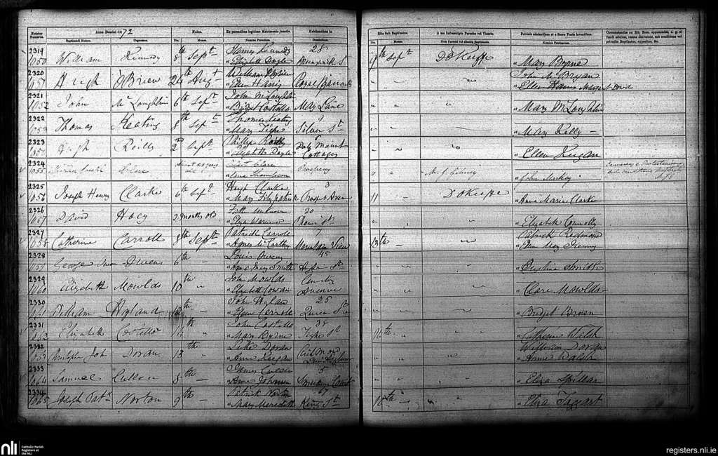 St. Paul's, Dublin city; County of Dublin; Archdiocese of Dublin. Baptisms, Sep. 1872