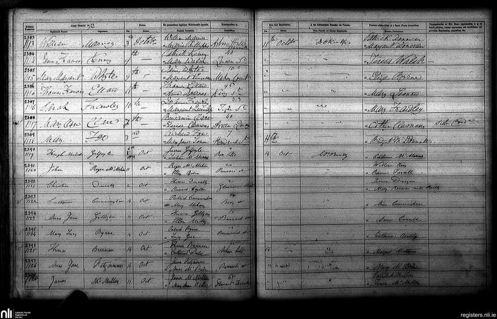 St. Paul's, Dublin city; County of Dublin; Archdiocese of Dublin. Baptisms, Oct. 1872