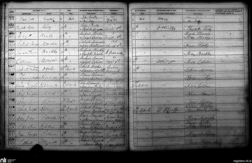 St. Paul's, Dublin city; County of Dublin; Archdiocese of Dublin. Baptisms, Mar. 1873