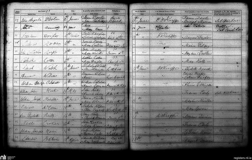 St. Paul's, Dublin city; County of Dublin; Archdiocese of Dublin. Baptisms, June 1873