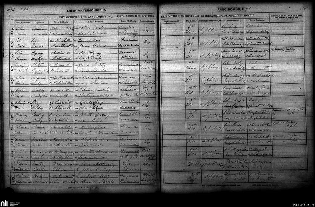 St. Paul's, Dublin city; County of Dublin; Archdiocese of Dublin. Marriages, Feb. 1876