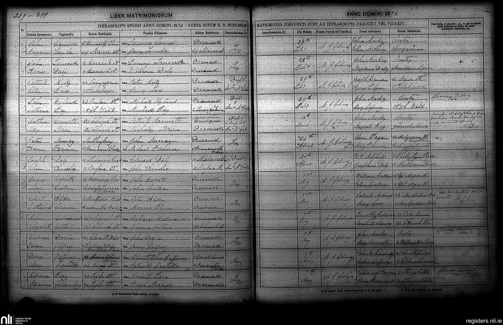 St. Paul's, Dublin city; County of Dublin; Archdiocese of Dublin. Marriages, Feb. 1876 to May 1876