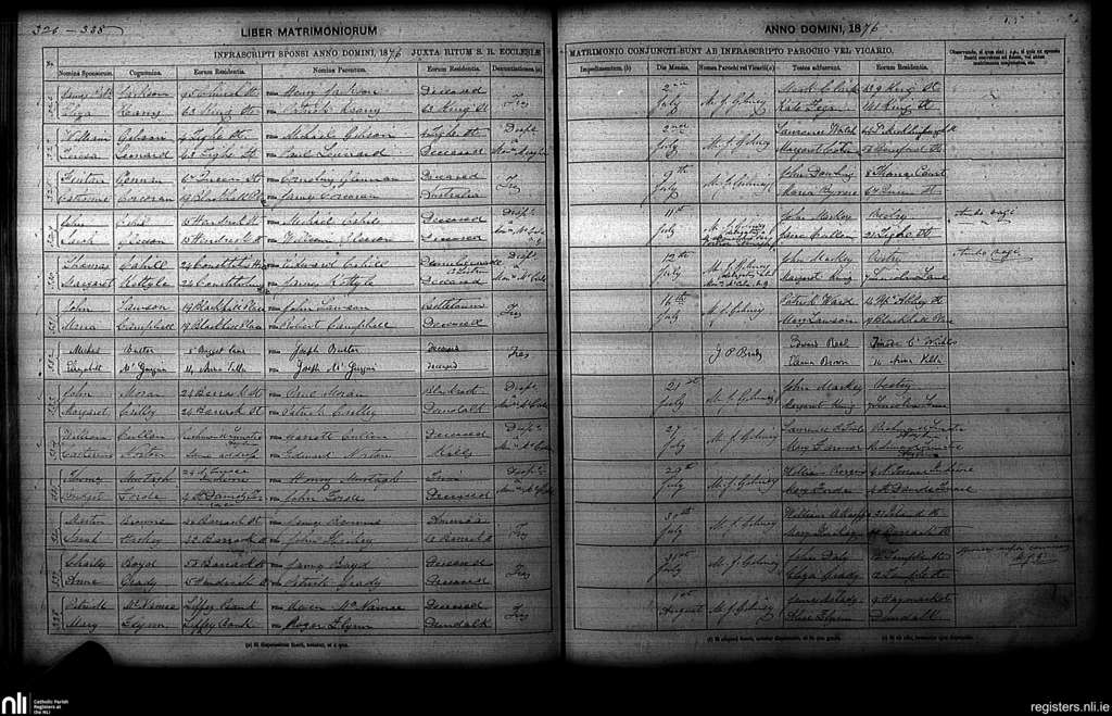 St. Paul's, Dublin city; County of Dublin; Archdiocese of Dublin. Marriages, July 1876 to Aug. 1876