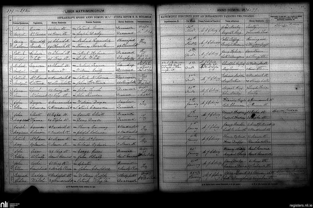St. Paul's, Dublin city; County of Dublin; Archdiocese of Dublin. Marriages, Nov. 1876 to Jan. 1877