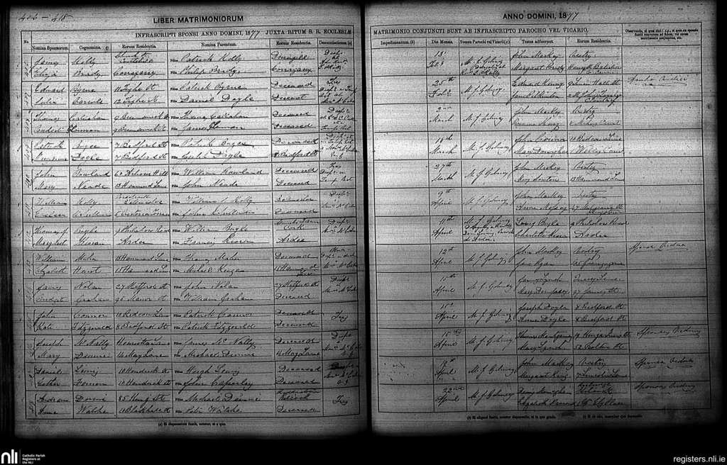 St. Paul's, Dublin city; County of Dublin; Archdiocese of Dublin. Marriages, Feb. 1877 to Apr. 1877