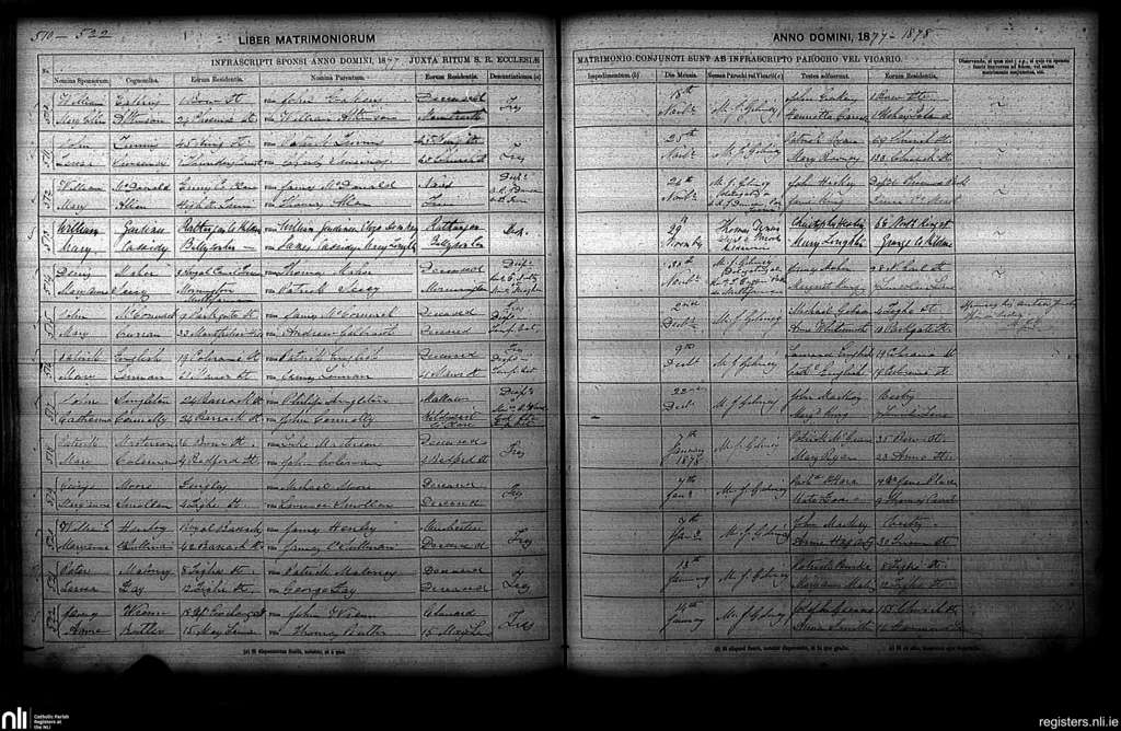 St. Paul's, Dublin city; County of Dublin; Archdiocese of Dublin. Marriages, Nov. 1877 to Jan. 1878