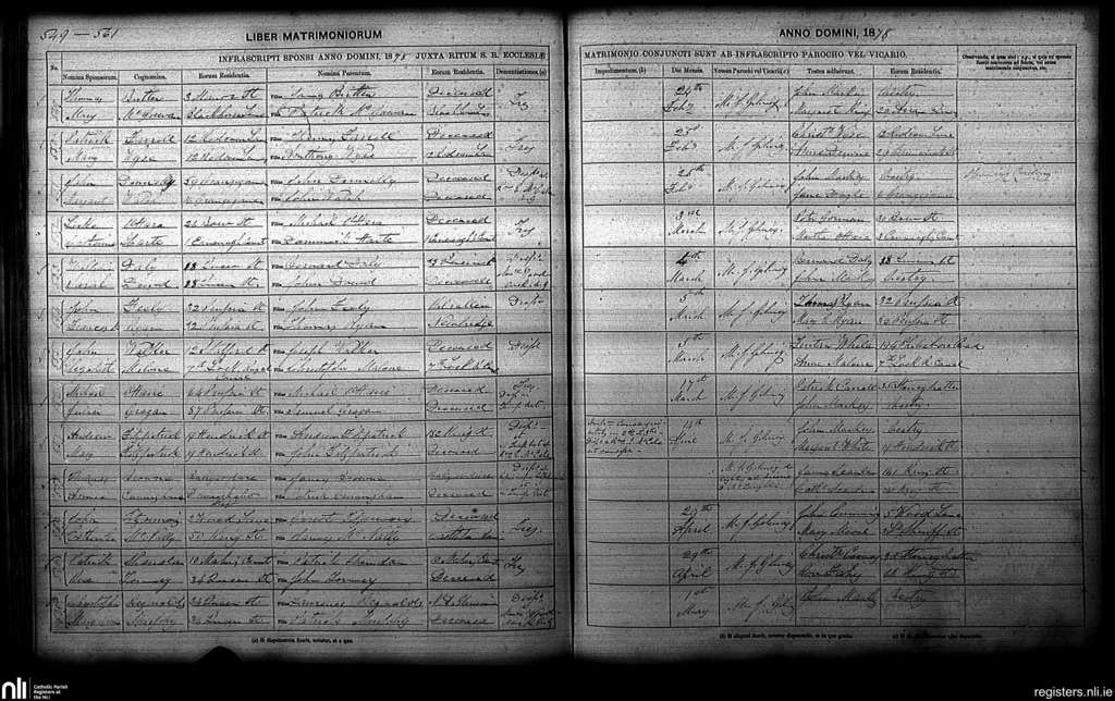 St. Paul's, Dublin city; County of Dublin; Archdiocese of Dublin. Marriages, Feb. 1878 to May 1878