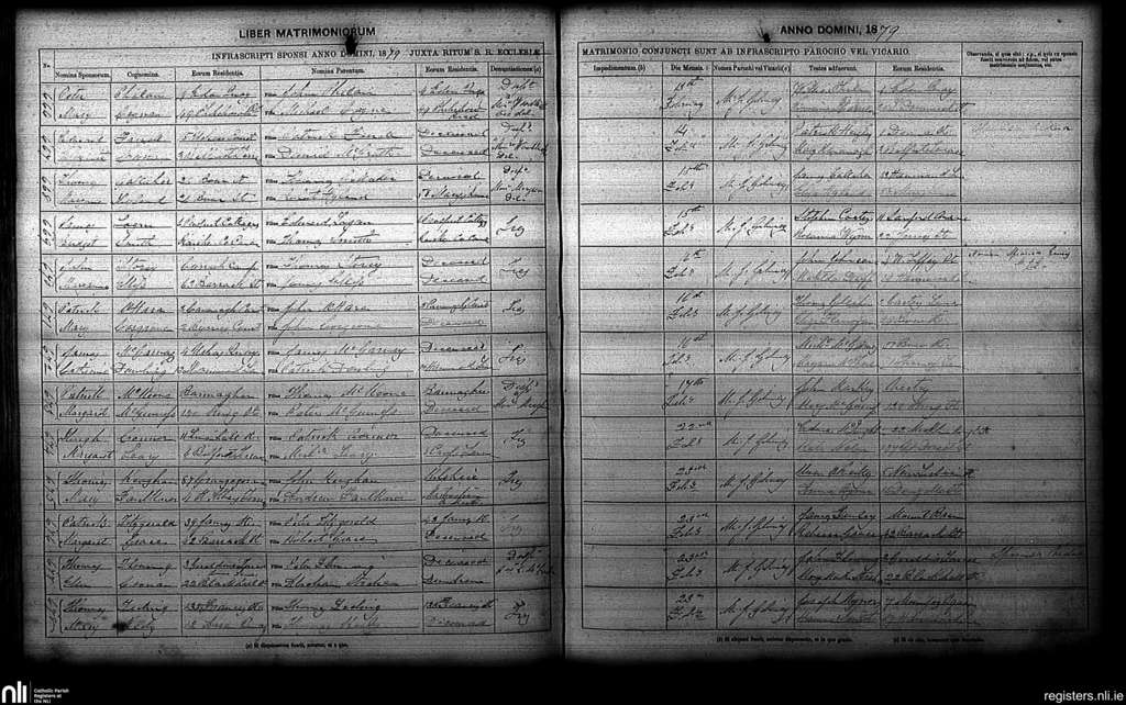 St. Paul's, Dublin city; County of Dublin; Archdiocese of Dublin. Marriages, Feb. 1879