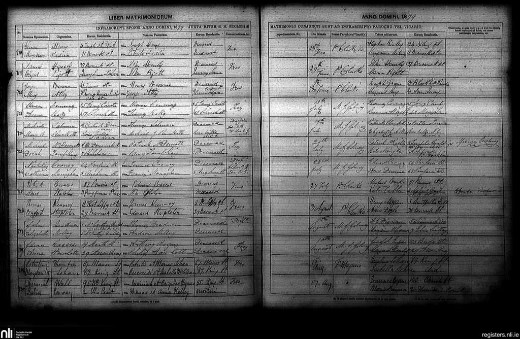 St. Paul's, Dublin city; County of Dublin; Archdiocese of Dublin. Marriages, June 1879 to Aug. 1879