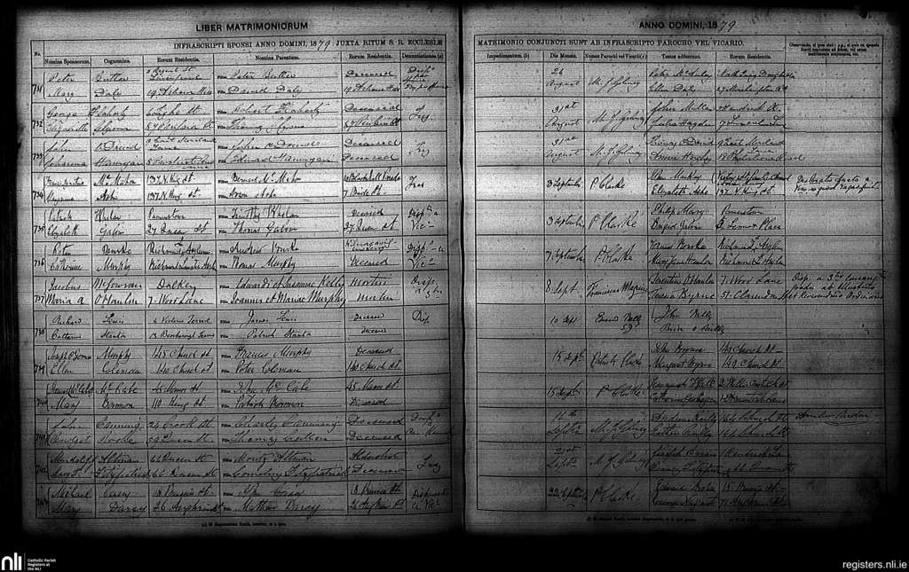 St. Paul's, Dublin city; County of Dublin; Archdiocese of Dublin. Marriages, Aug. 1879 to Sep. 1879