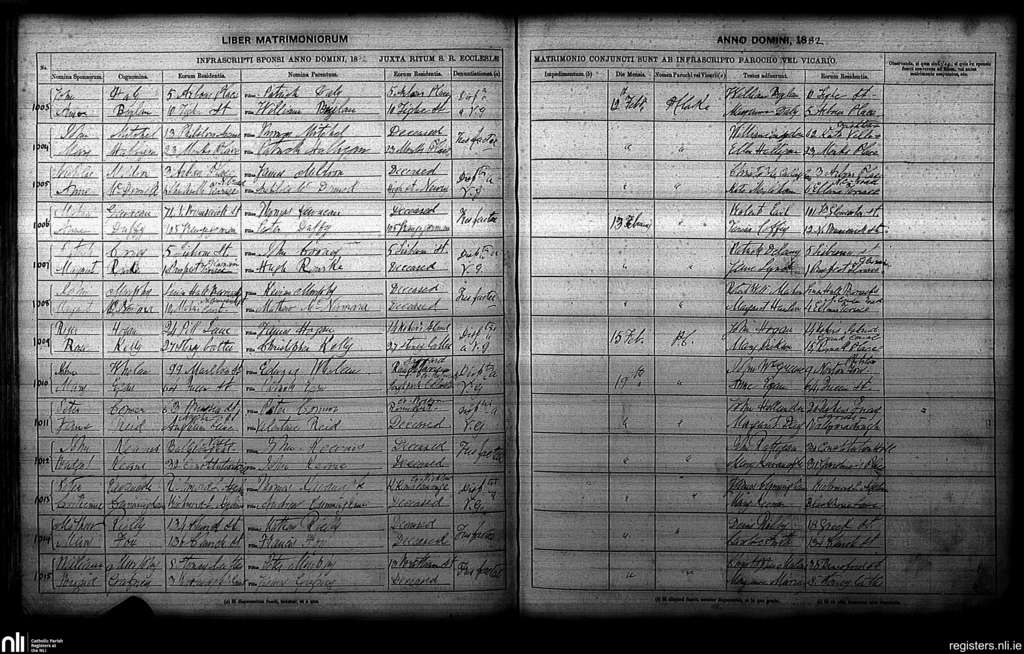 St. Paul's, Dublin city; County of Dublin; Archdiocese of Dublin. Marriages, Feb. 1882