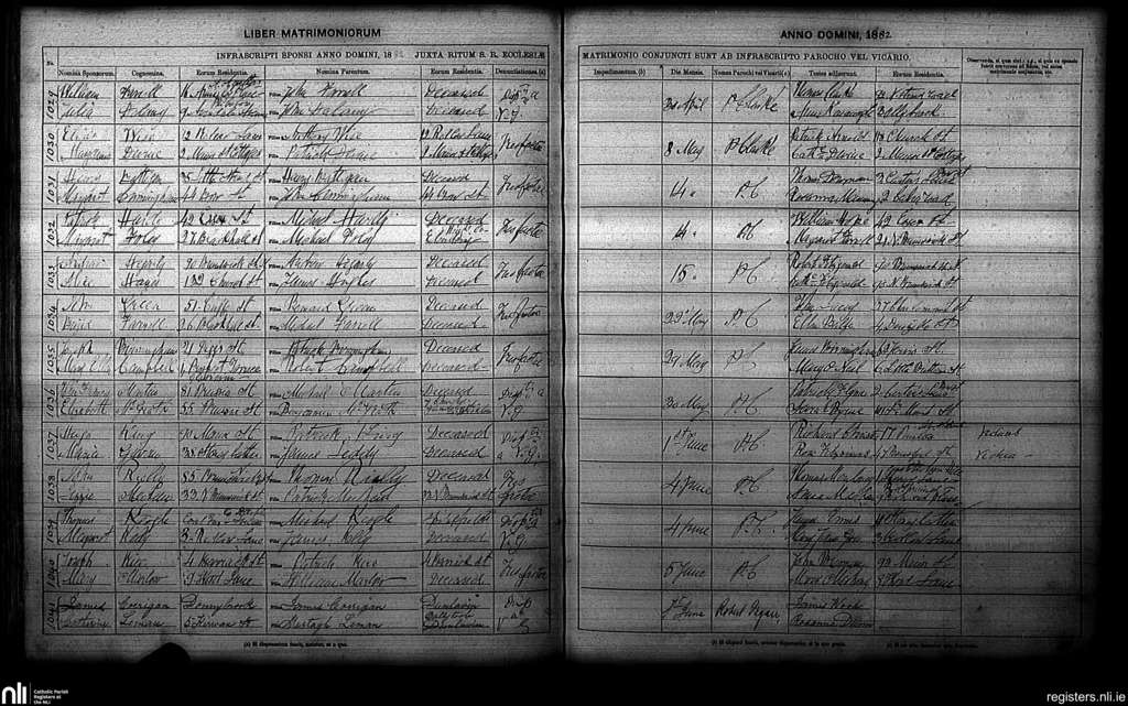 St. Paul's, Dublin city; County of Dublin; Archdiocese of Dublin. Marriages, Apr. 1882 to June 1882