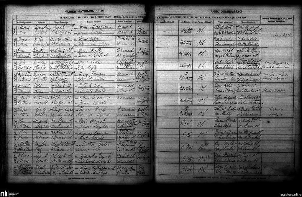 St. Paul's, Dublin city; County of Dublin; Archdiocese of Dublin. Marriages, Oct. 1882 to Nov. 1882