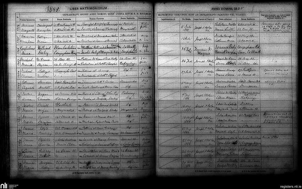 St. Paul's, Dublin city; County of Dublin; Archdiocese of Dublin. Marriages, July 1885 to Aug. 1885