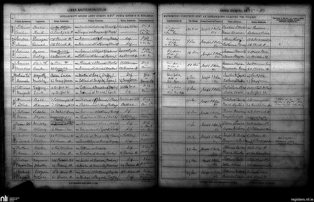 St. Paul's, Dublin city; County of Dublin; Archdiocese of Dublin. Marriages, Nov. 1885 to Jan. 1886