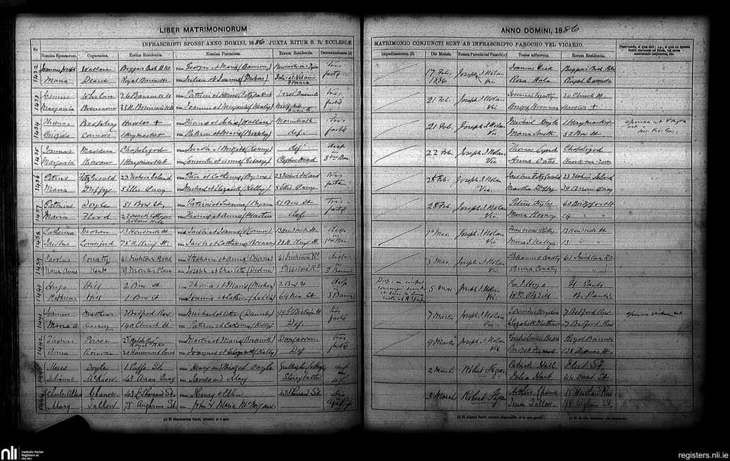 St. Paul's, Dublin city; County of Dublin; Archdiocese of Dublin. Marriages, Feb. 1886 to Mar. 1886