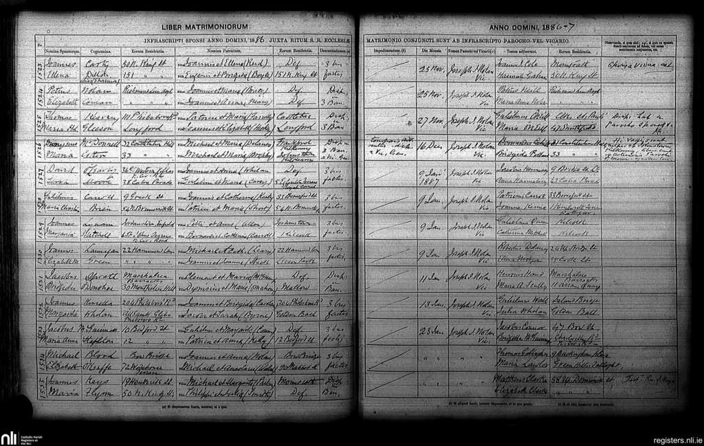 St. Paul's, Dublin city; County of Dublin; Archdiocese of Dublin. Marriages, Nov. 1886 to Jan. 1887