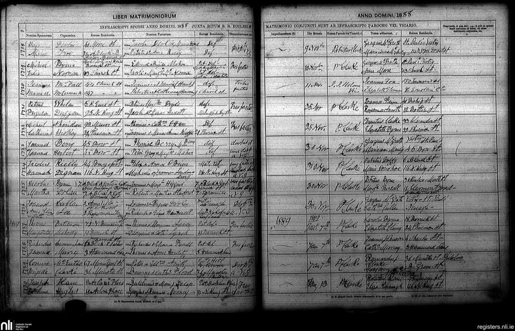 St. Paul's, Dublin city; County of Dublin; Archdiocese of Dublin. Marriages, Nov. 1888 to Jan. 1889