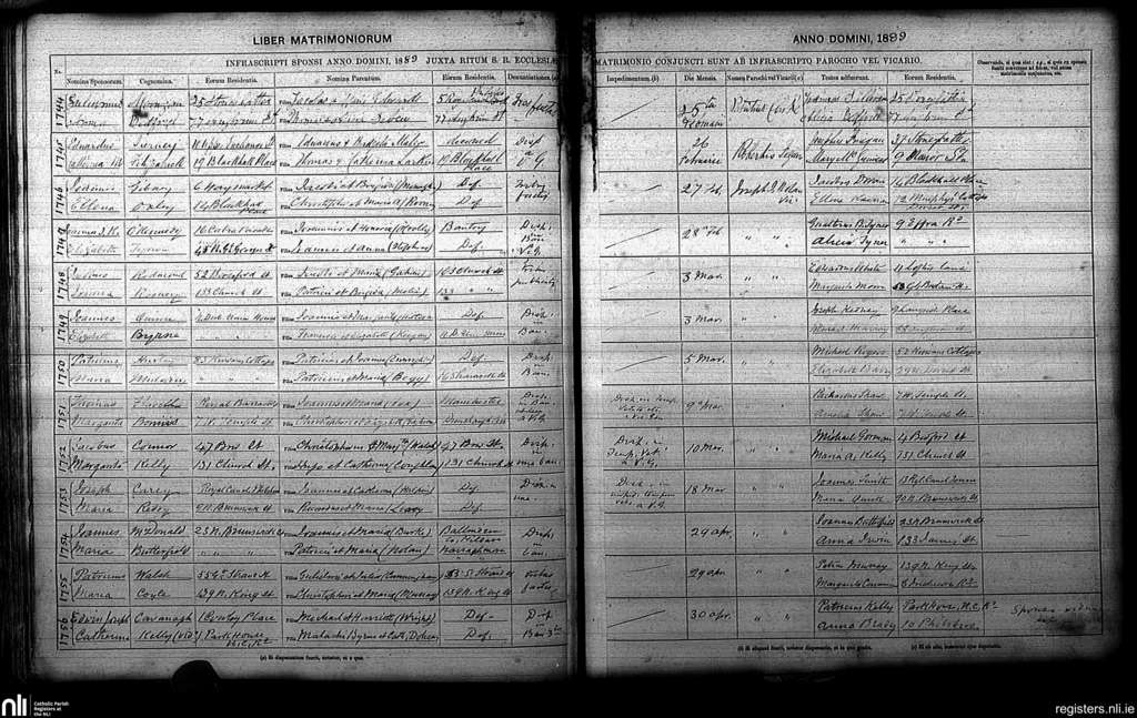 St. Paul's, Dublin city; County of Dublin; Archdiocese of Dublin. Marriages, Jan. 1889 to Apr. 1889