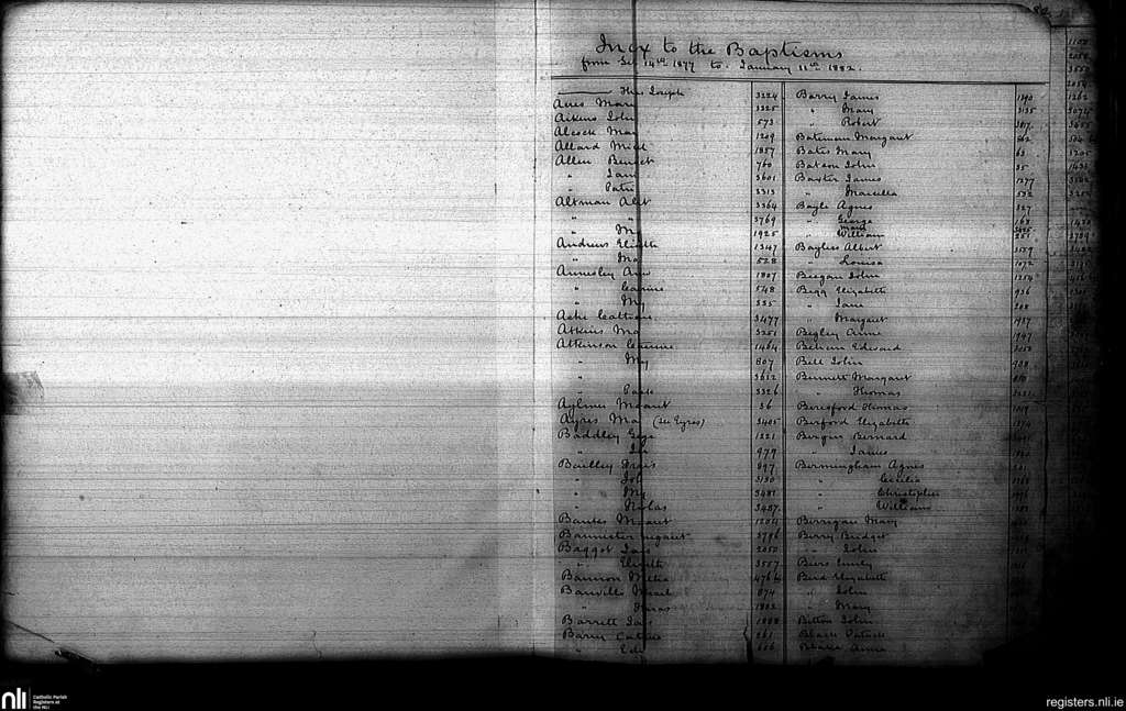 St. Paul's, Dublin city; County of Dublin; Archdiocese of Dublin. Baptisms