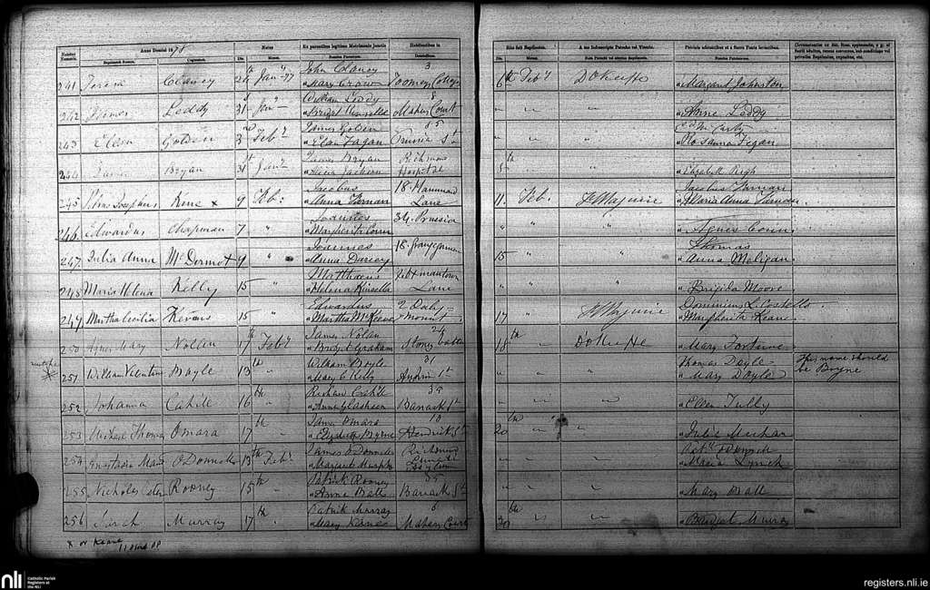 St. Paul's, Dublin city; County of Dublin; Archdiocese of Dublin. Baptisms, Feb. 1878