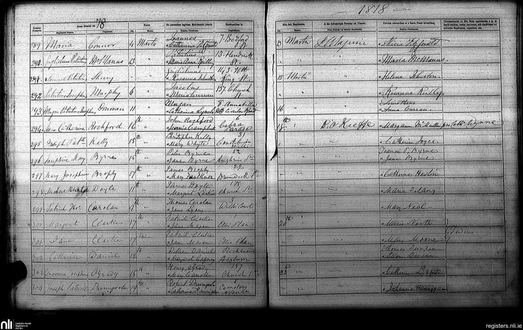 St. Paul's, Dublin city; County of Dublin; Archdiocese of Dublin. Baptisms, Mar. 1878