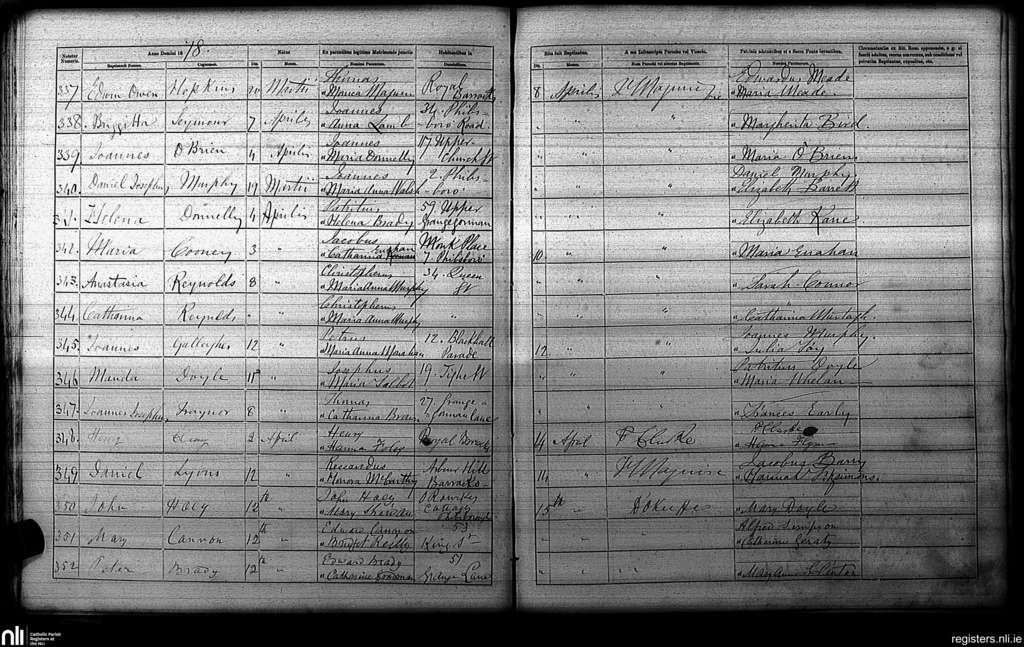St. Paul's, Dublin city; County of Dublin; Archdiocese of Dublin. Baptisms, Apr. 1878