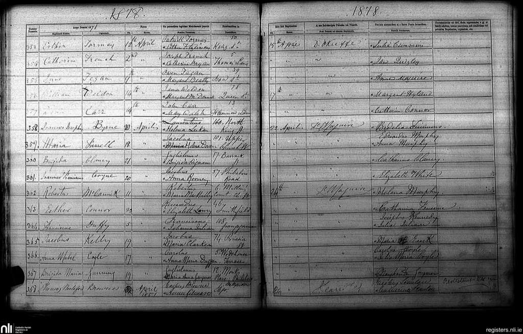 St. Paul's, Dublin city; County of Dublin; Archdiocese of Dublin. Baptisms, Apr. 1878