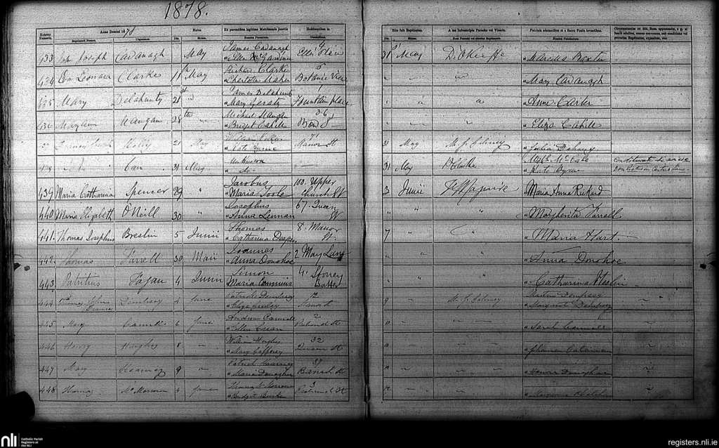 St. Paul's, Dublin city; County of Dublin; Archdiocese of Dublin. Baptisms, May 1878 to June 1878