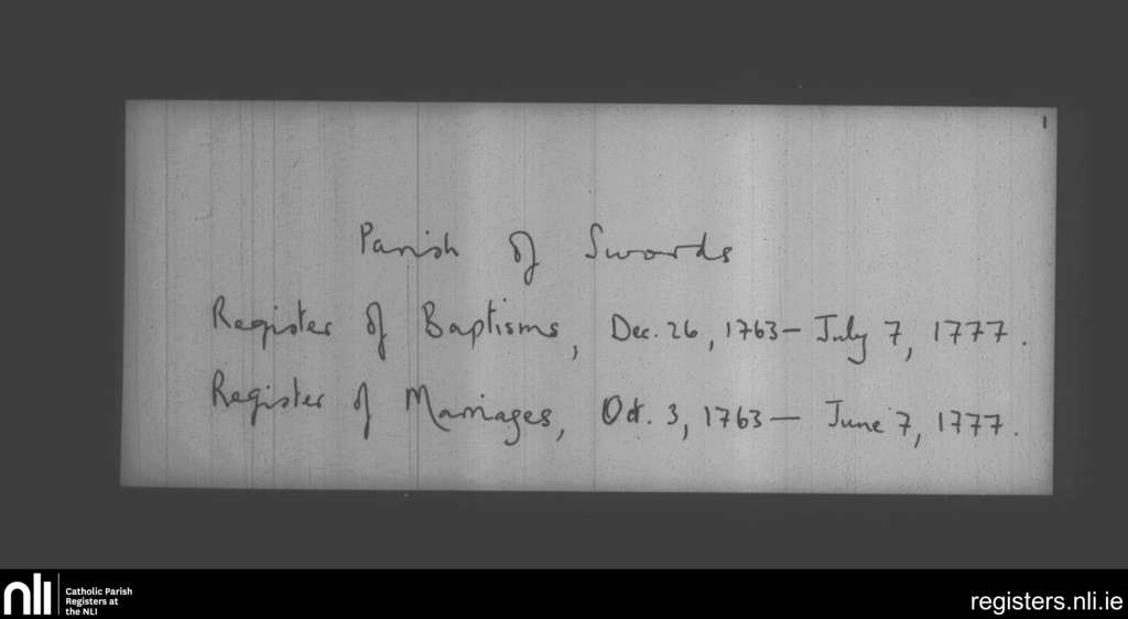 Swords; County of Dublin; Archdiocese of Dublin. Baptisms, Marriages