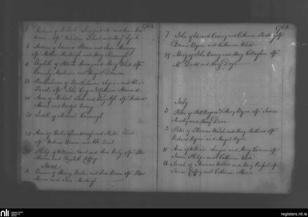 Swords; County of Dublin; Archdiocese of Dublin. Baptisms, May 1764 to July 1764