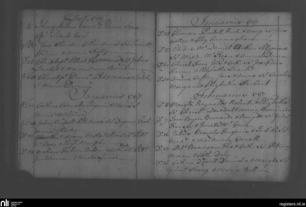 Swords; County of Dublin; Archdiocese of Dublin. Baptisms, Dec. 1766 to Feb. 1767