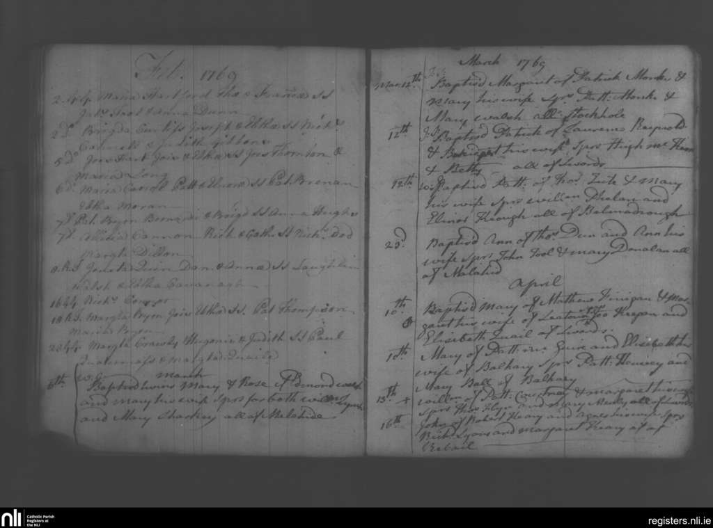 Swords; County of Dublin; Archdiocese of Dublin. Baptisms, Feb. 1769 to Apr. 1769