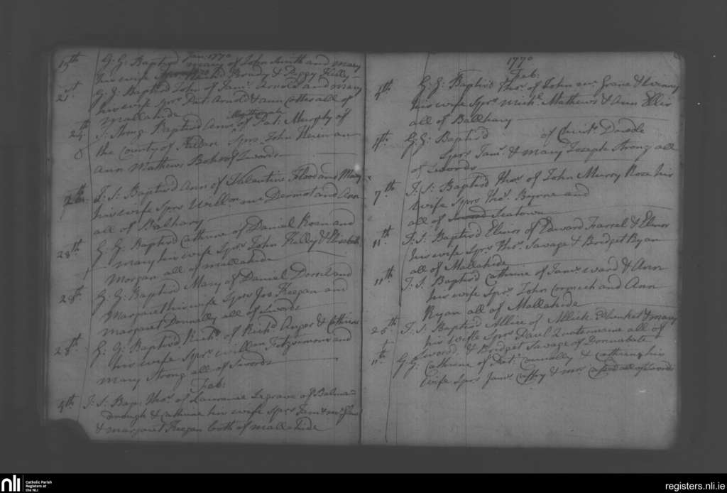 Swords; County of Dublin; Archdiocese of Dublin. Baptisms, Jan. 1770 to Feb. 1770