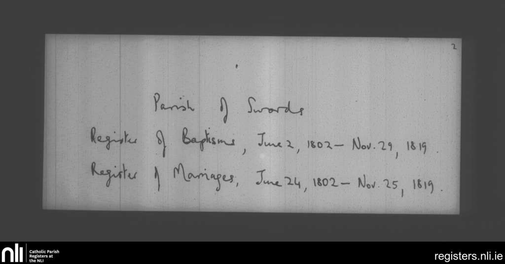 Swords; County of Dublin; Archdiocese of Dublin. Baptisms, Marriages