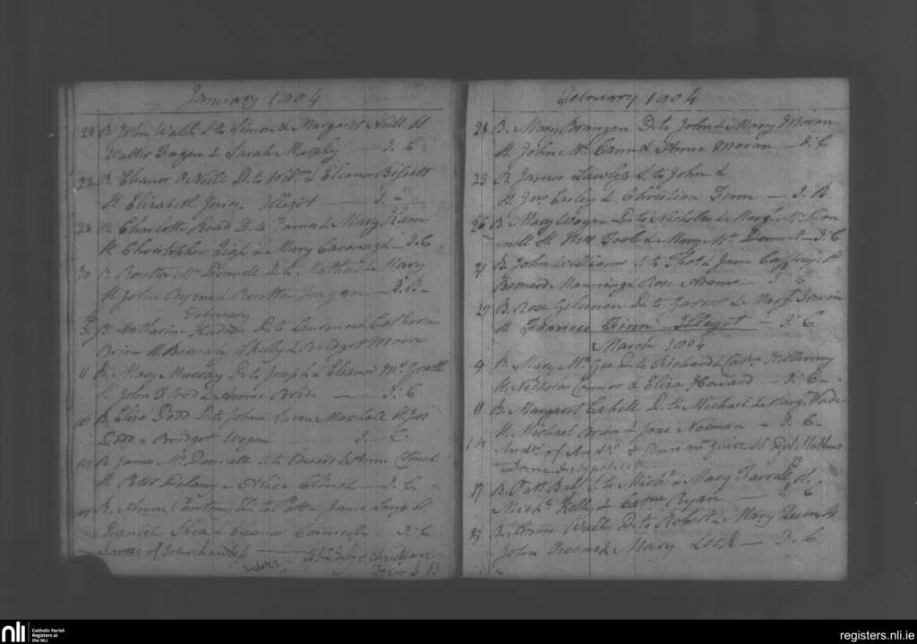 Swords; County of Dublin; Archdiocese of Dublin. Baptisms, Jan. 1804 to Mar. 1804