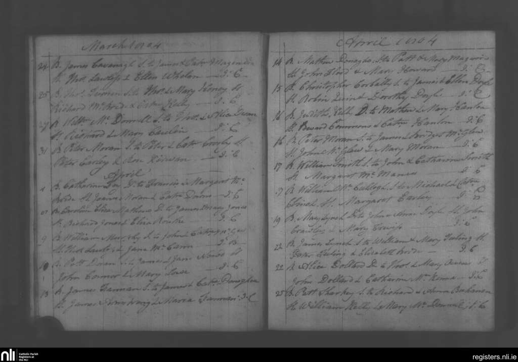 Swords; County of Dublin; Archdiocese of Dublin. Baptisms, Mar. 1804 to Apr. 1804