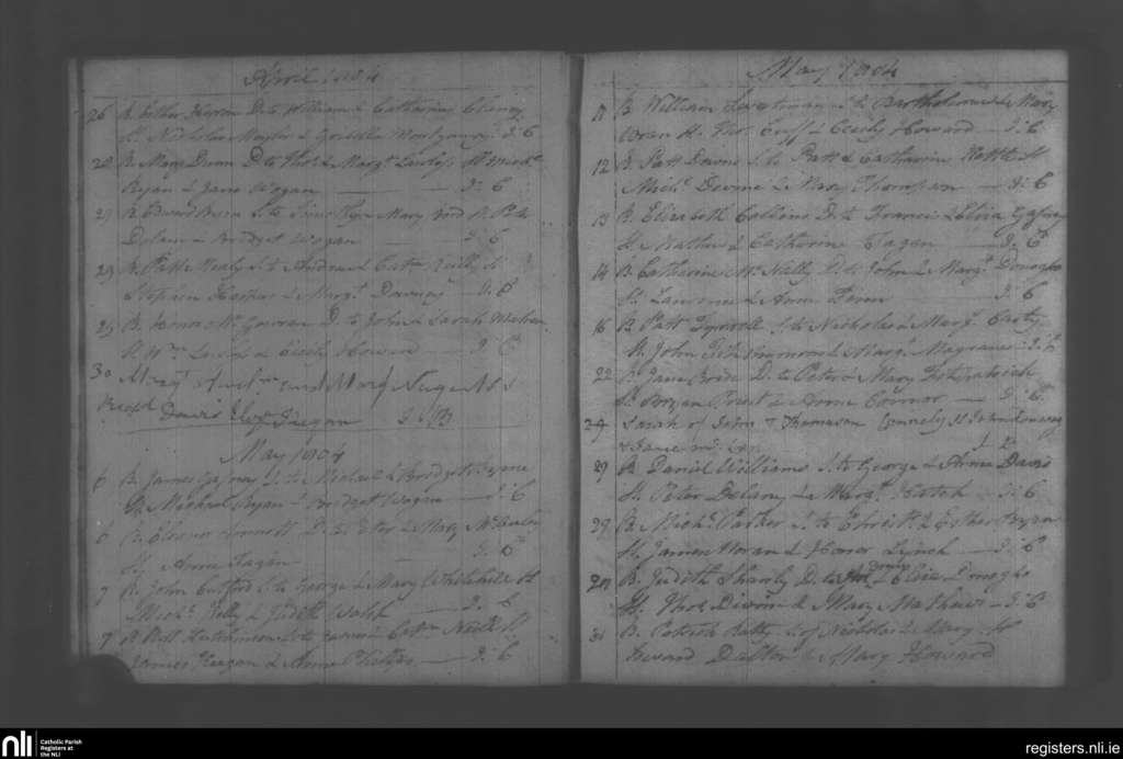 Swords; County of Dublin; Archdiocese of Dublin. Baptisms, Apr. 1804 to May 1804