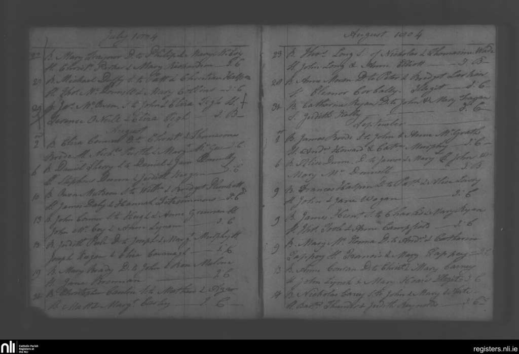 Swords; County of Dublin; Archdiocese of Dublin. Baptisms, July 1804 to Sep. 1804