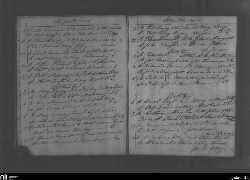 Swords; County of Dublin; Archdiocese of Dublin. Baptisms, Aug. 1805 to Oct. 1805