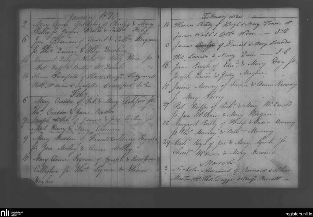 Swords; County of Dublin; Archdiocese of Dublin. Baptisms, Jan. 1820 to Mar. 1820