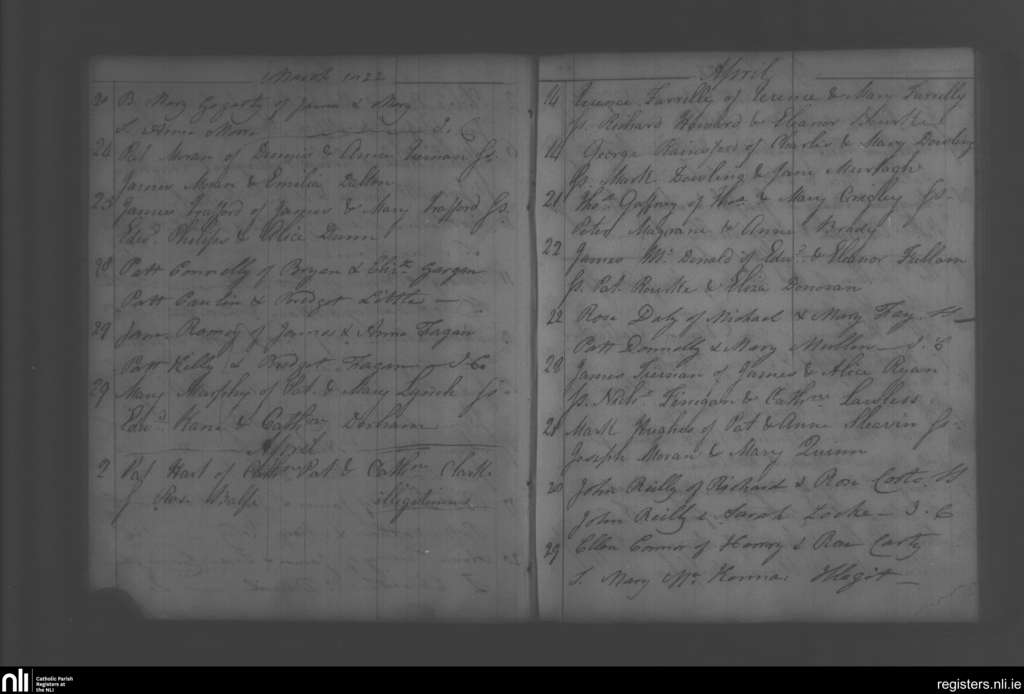 Swords; County of Dublin; Archdiocese of Dublin. Baptisms, Mar. 1822 to Apr. 1822