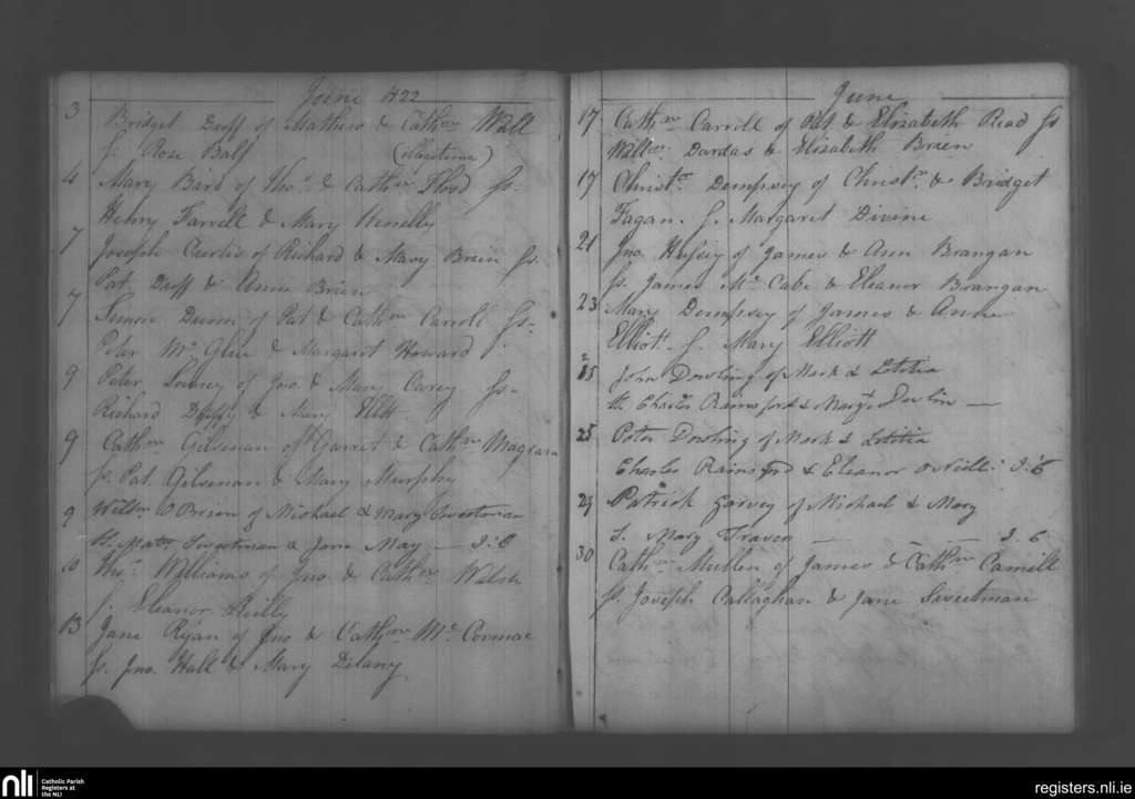 Swords; County of Dublin; Archdiocese of Dublin. Baptisms, June 1822